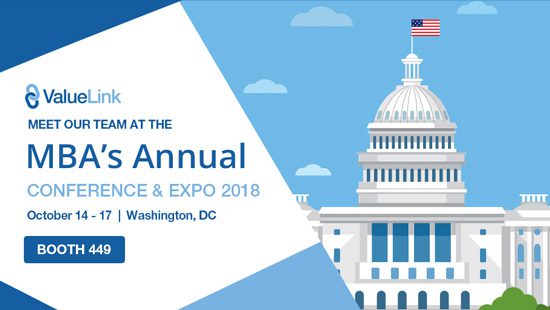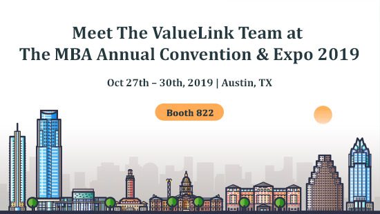The ValueLink Team will be exhibiting at Booth 822 of the MBA Annual Convention & Expo 2019 in Austin, TX from October 27 – 30, 2019.